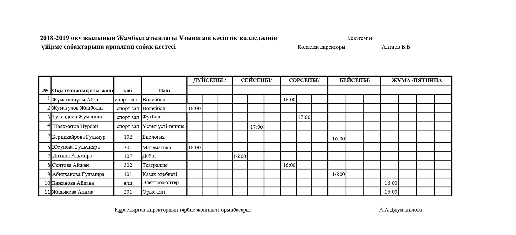 2018-2019 оқу жылына арналған жұмыс жоспары